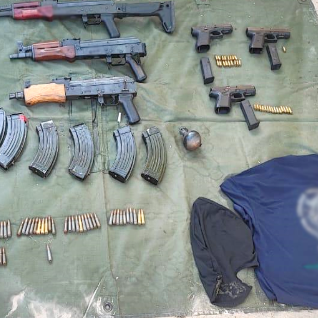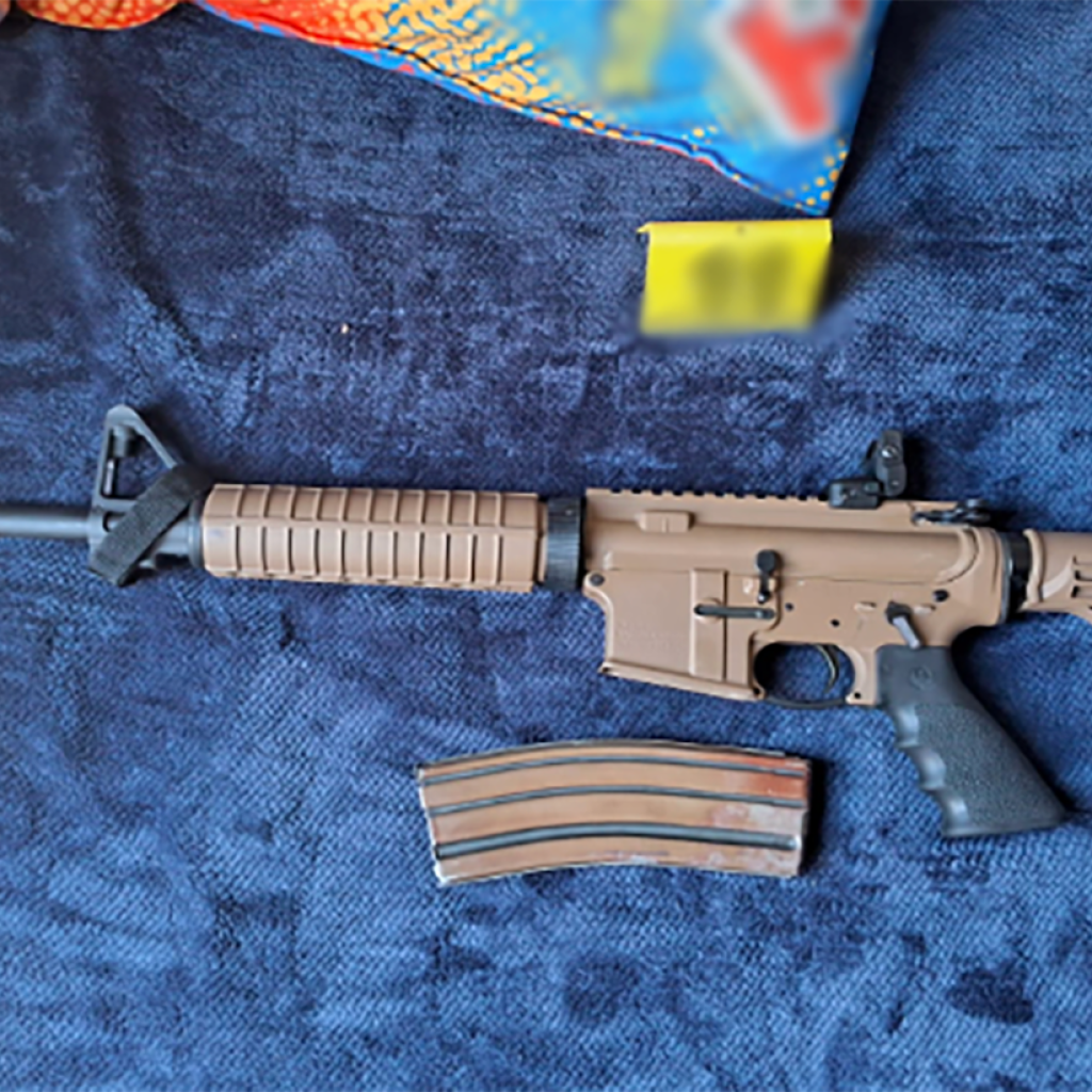 El Gabinete de Seguridad destaca entre los aseguramientos y detenciones el realizado en San Felipe, Baja California, donde se detuvo a una persona, se aseguraron seis armas de fuego, nueve cargadores, 84 cartuchos, una granada de fragmentación, 19 estrellas ponchallantas y un vehículo con reporte de robo.