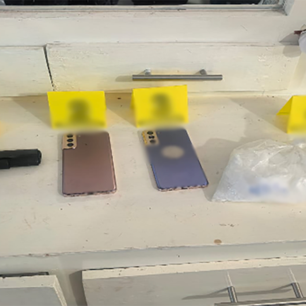 En Ciudad Acuña, Coahuila, se detuvo a dos personas, se aseguraron dos armas de fuego, cargadores, 55 cartuchos, 1.4 kilos de metanfetamina, 44 dosis de cocaína, una báscula gramera, nueve celulares, un vehículo y tres inmuebles.