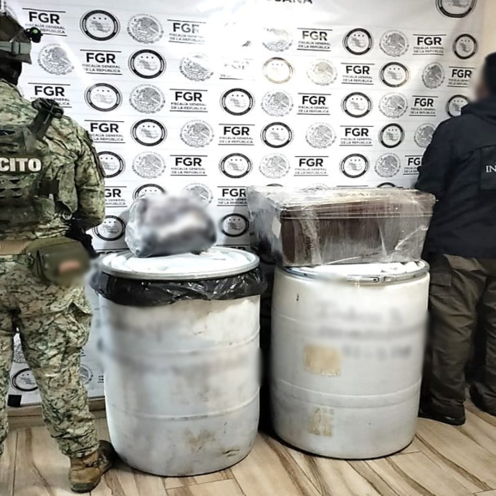 En Hermosillo, Sonora se detuvo a una persona, se aseguraron cuatro kilos de metanfetamina y un vehículo. Además, en San Luis Río Colorado, se aseguraron 1,062 litros de metanfetamina líquida y un vehículo.