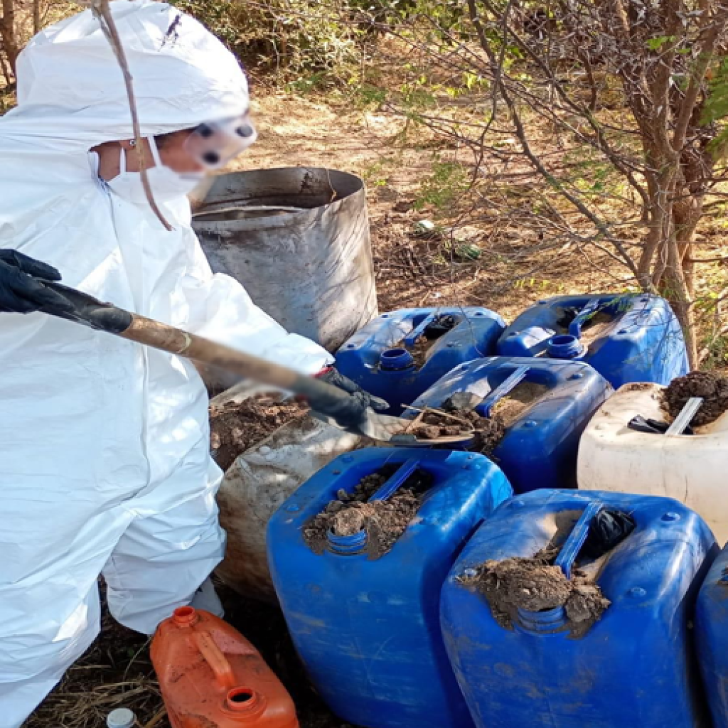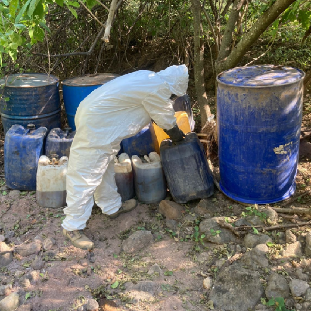 En Culiacán y Cosalá, se localizaron e inhabilitaron nueve áreas de concentración de material diverso para la fabricación de drogas sintéticas, se aseguraron 12,425 litros de sustancias químicas para la elaboración de metanfetamina, un condensador y una centrifugadora. La afectación económica a la delincuencia organizada es de 251 millones de pesos.
