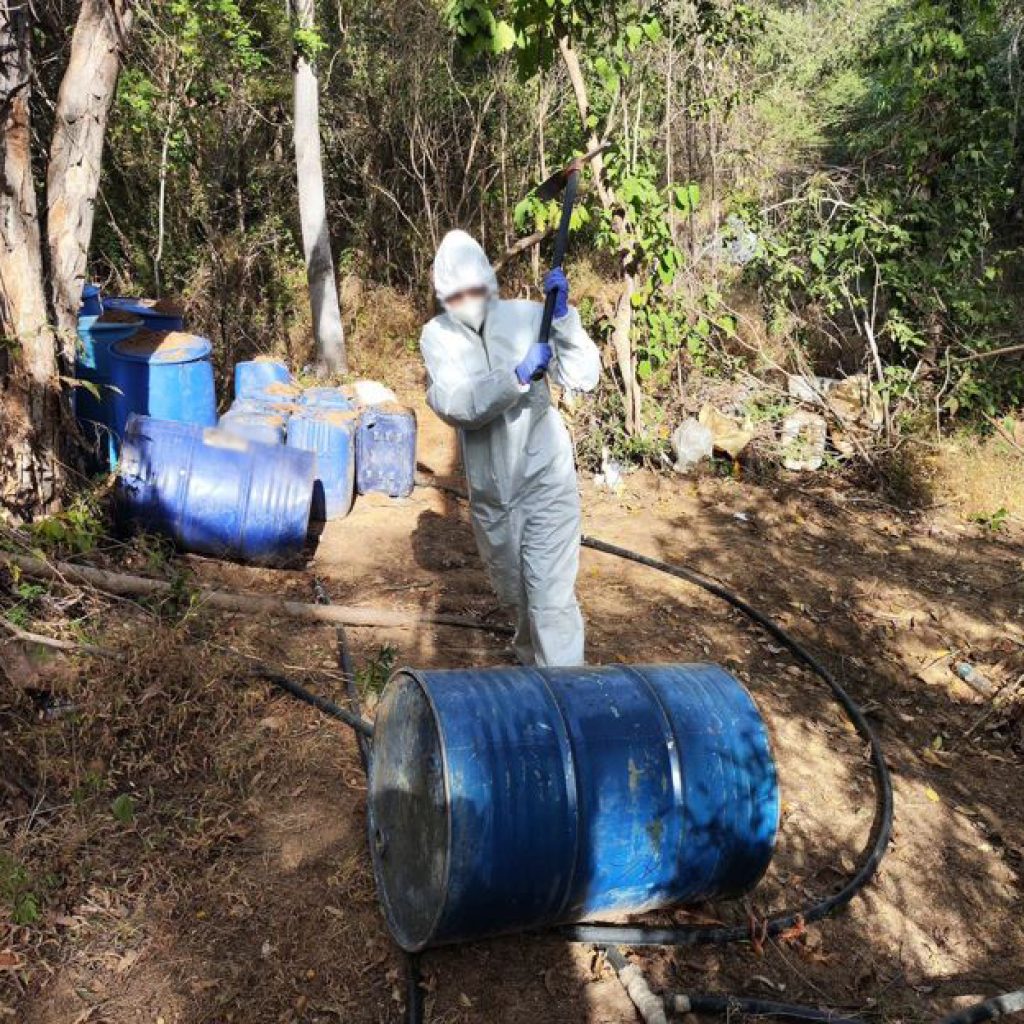 En Sinaloa, en los municipios de Culiacán, Cosalá y Badiraguato, se localizó e inhabilitó un laboratorio clandestino, seis áreas de concentración de material diverso para la fabricación de drogas sintéticas, se aseguraron 9,115 litros y 4,135 kilos de sustancias para la elaboración de metanfetamina, cinco reactores de síntesis orgánica, siete condensadores, nueve tanques de gas LP y un quemador. La afectación económica a la delincuencia organizada es de 1,032 millones de pesos.