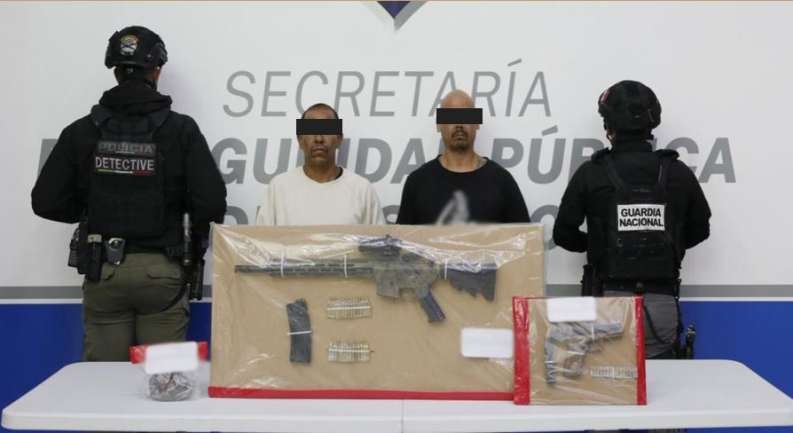 La Secretaría de Seguridad y Protección Ciudadana (SSPC) resaltó las diligencias realizadas en los últimos días en tres estados. En Ciudad Juárez, Chihuahua, se detuvo a dos personas, se aseguraron dos armas de fuego, dos cargadores, 44 cartuchos, 28 dosis de marihuana y un vehículo.