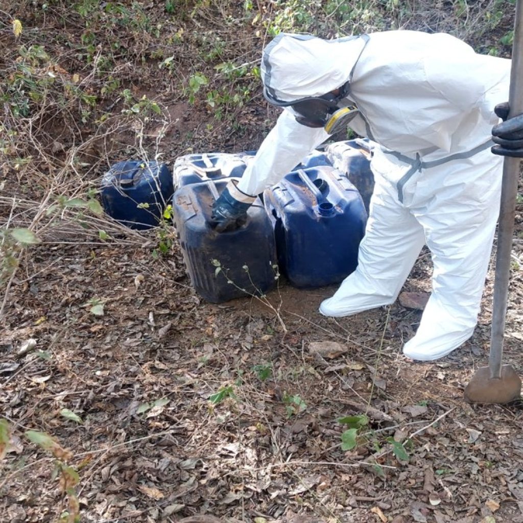 En Corral Viejo, Sinaloa se localizó e inhabilitó un reactor químico con capacidad de 1,000 litros, se aseguraron 1,200 litros y 625 kilos de precursores químicos.