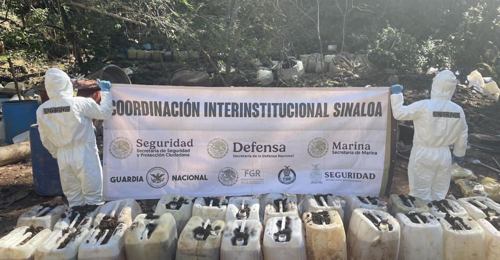 En Mocorito, Badiraguato, Culiacán y Cosalá, se inhabilitaron 16 áreas de concentración de material diverso para la fabricación de drogas sintéticas.