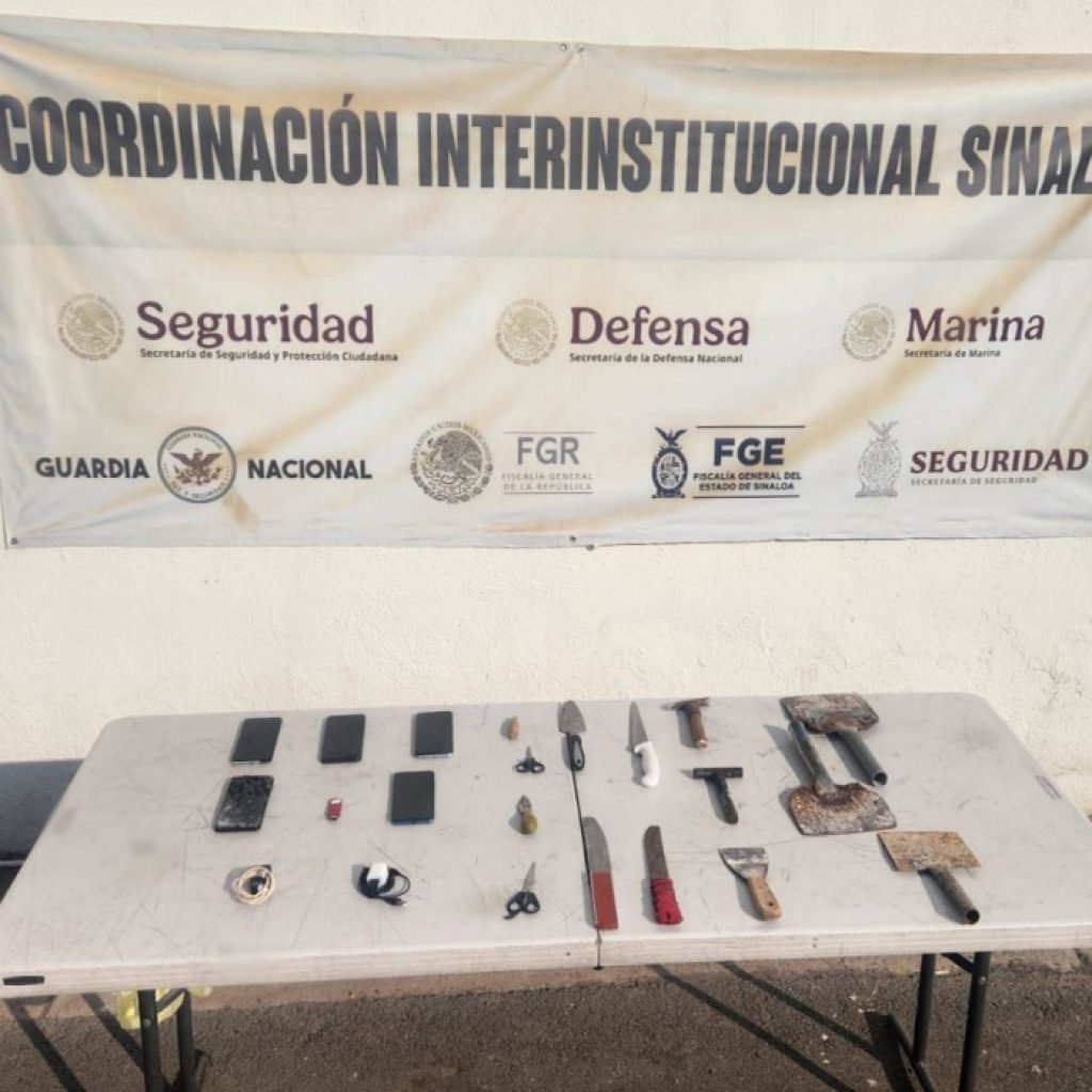 La Secretaría de Seguridad y Protección Ciudadana (SSPC) resaltó algunas de las diligencias realizadas en los últimos días en dos entidades. En Culiacán, Sinaloa, se aseguraron cinco teléfonos celulares, un cargador para teléfono celular, una memoria USB, nueve objetos punzocortantes y cinco objetos contundentes.
