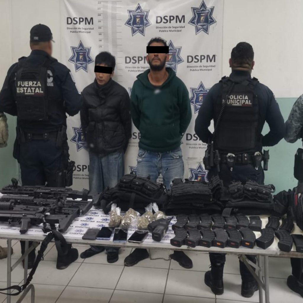 La Secretaría de Seguridad y Protección Ciudadana (SSPC) resaltó las diligencias realizadas en los últimos días en seis estados. En Mexicali, Baja California, se aseguraron cuatro armas largas, 18 cargadores, 514 cartuchos, siete bolsas con marihuana, tres chalecos tácticos, tres cascos, dos radios de comunicación, cuatro teléfonos y un vehículo.