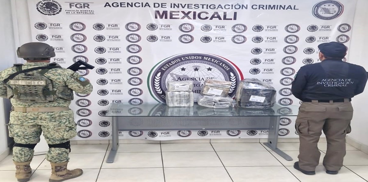 También en Baja California, pero en Mexicali, se detuvo a cuatro personas, se aseguraron 41 kilos de cocaína, 17 tractocamiones, cuatro remolques, seis vehículos, una réplica de armas de fuego y un inmueble.
