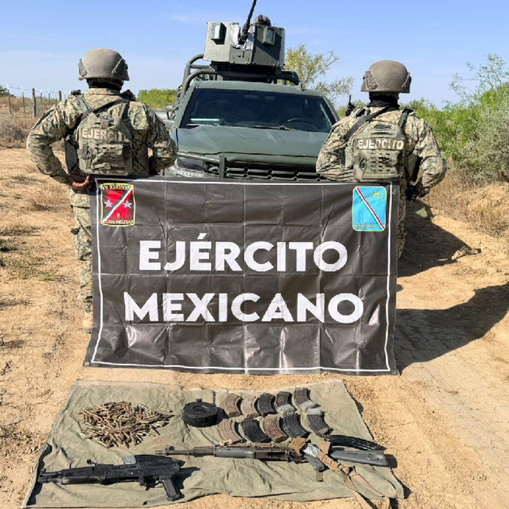 Mientras que en Miguel Alemán, Tamaulipas, se aseguraron dos armas de fuego, 13 cargadores y 341 cartuchos.