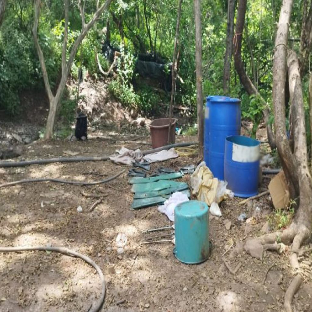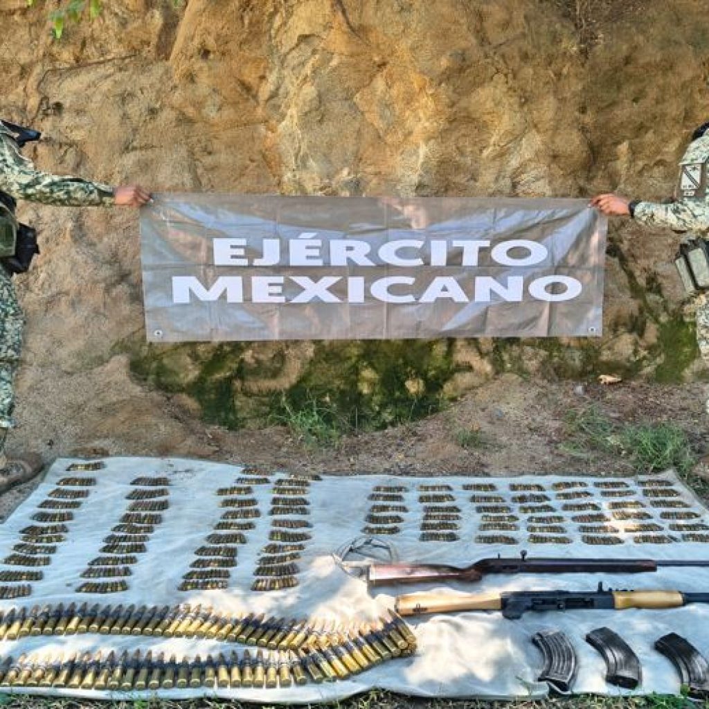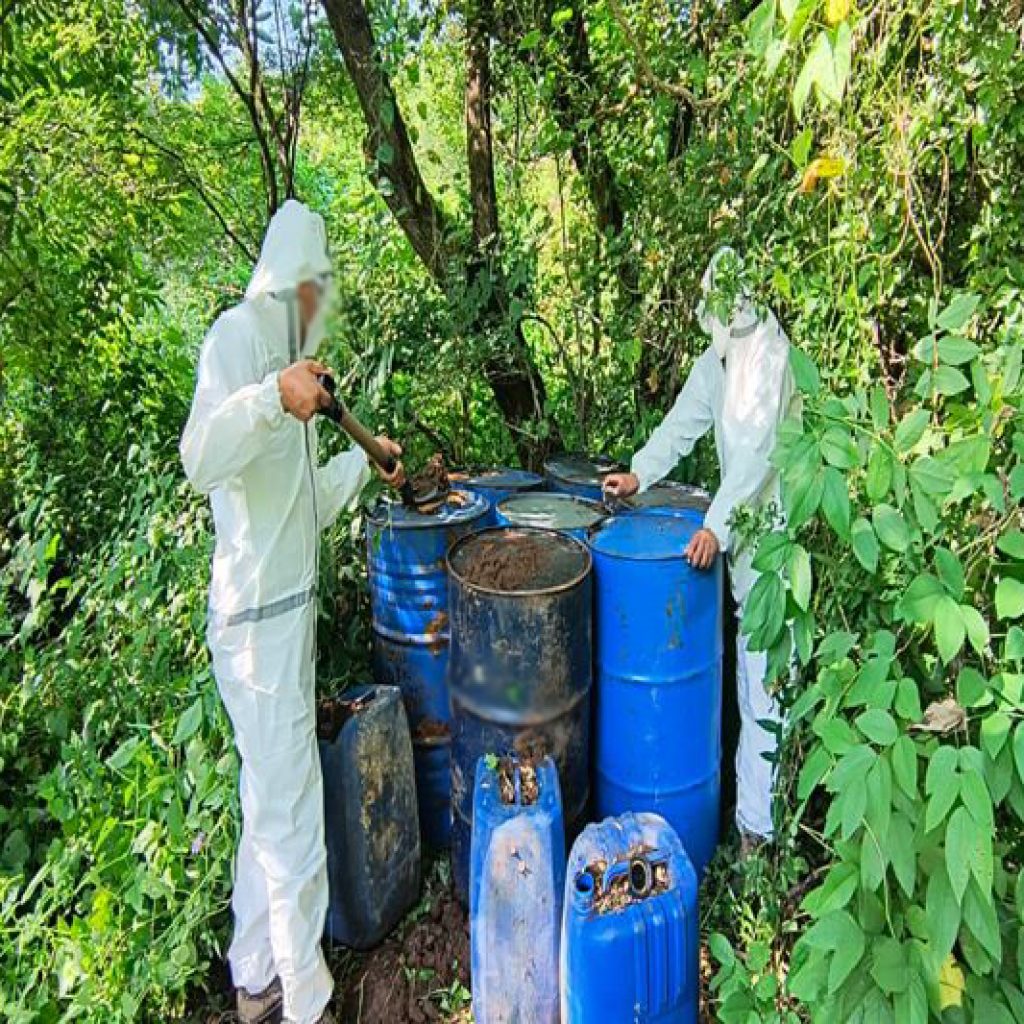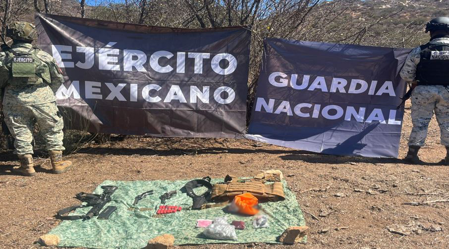 En Badiraguato, Sinaloa, se aseguraron dos armas largas, tres cargadores y 3,580 cartuchos. En Cosalá, se localizaron e inhabilitaron tres áreas de concentración de material diverso para la fabricación de drogas sintéticas, se aseguraron 3,000 litros y 25 kilos de sustancias para la elaboración de metanfetamina.