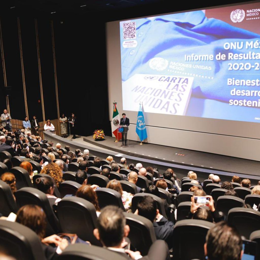 El secretario de Relaciones Exteriores, Roberto Velasco, encabezó la presentación del informe de resultados de ONU México 2020-2025, celebrada en la nueva sede de la Cineteca Nacional Chapultepec. Acompañado por la coordinadora residente del sistema en el país, Allegra Baiocchi, el canciller destacó la solidez de la relación bilateral y el papel protagónico que el Estado mexicano asumirá en la reconfiguración del orden internacional.