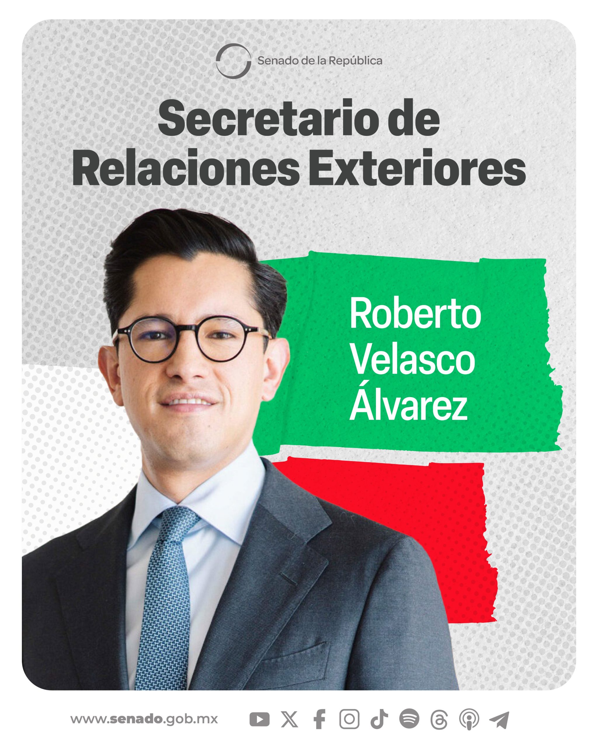 Este miércoles 8 de abril de 2026, el pleno del Senado de la República ratificó a Roberto Velasco Álvarez como el nuevo titular de la Secretaría de Relaciones Exteriores (SRE). Tras una comparecencia en comisiones donde defendió su plan de trabajo, el nombramiento fue aprobado con una mayoría de 81 votos a favor y 30 en contra.