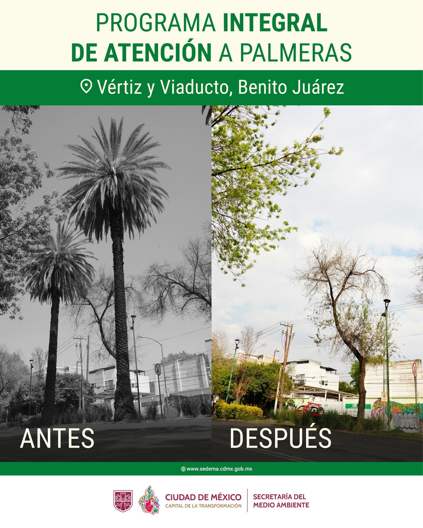 Ciudad de México. La Secretaría del Medio Ambiente (SEDEMA) de la Ciudad de México presentó la actualización del Programa Integral de Atención a Palmeras, correspondiente a la semana del 6 al 10 de abril de 2026. El proyecto tiene como objetivo fortalecer el ecosistema urbano mediante la sustitución de ejemplares seniles o enfermos por especies nativas que garanticen mayor resiliencia ambiental.