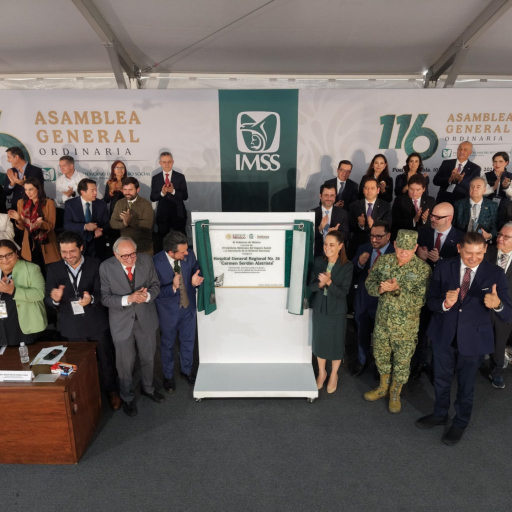 La Presidenta Claudia Sheinbaum encabezó en Puebla la 116 Asamblea General del Instituto Mexicano del Seguro Social (IMSS), donde inauguró el nuevo Hospital General Regional No. 36 “Carmen Serdán Alatriste” que sustituye al Hospital de San Alejandro, dañado por el sismo de 2017, la nueva unidad beneficiará a más de 554 mil derechohabientes, consolidándose como uno de los proyectos hospitalarios más relevantes de la región.