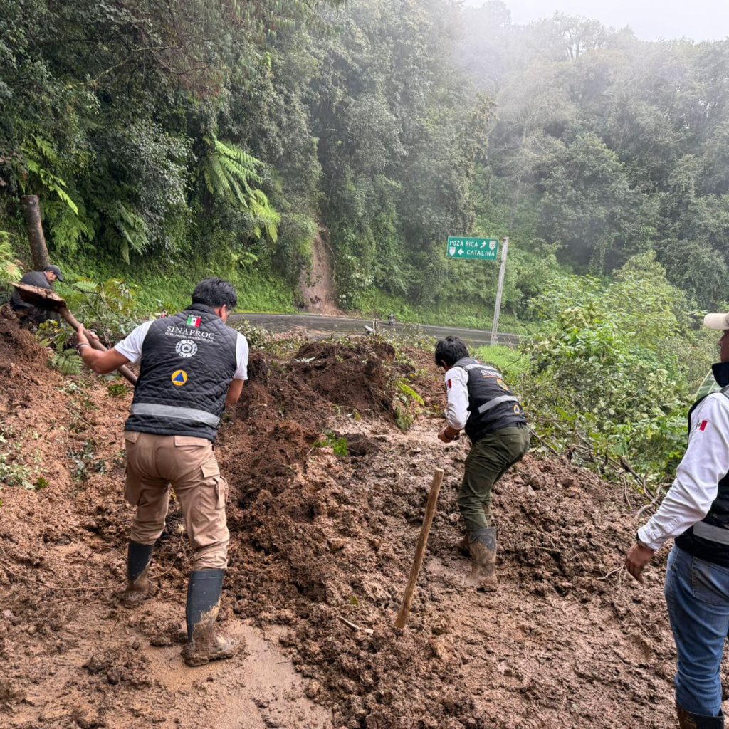 En San Luis Potosí, se registran 11 municipios afectados con derrumbes en cerros y el desbordamiento de los ríos Axtla y Moctezuma. En Puebla, 26 municipios presentan daños derivados de deslizamientos y anegaciones; además, una escuela y un hospital en Huauchinango fueron atendidos de manera inmediata.