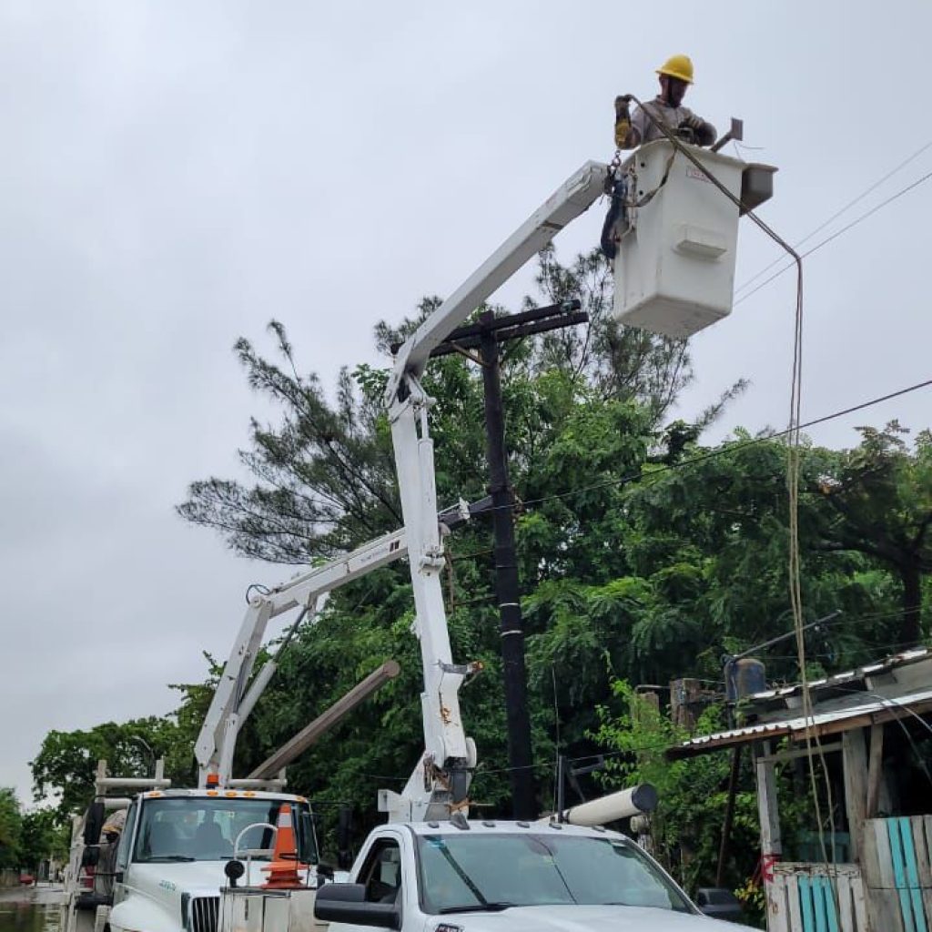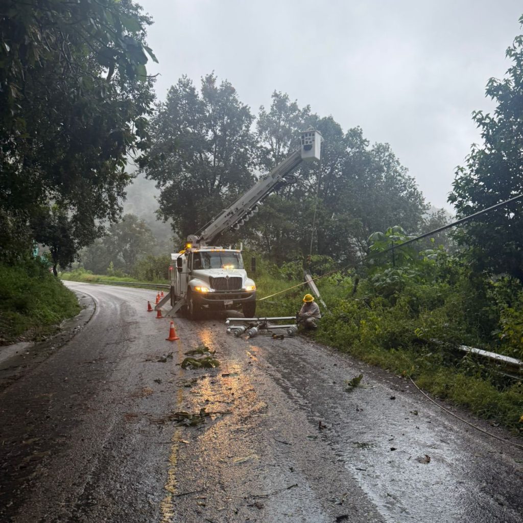 Desde el primer reporte de interrupciones, personal especializado de CFE fue desplegado para realizar las labores de restablecimiento del servicio. Para atender esta contingencia, se han dispuesto 380 trabajadores electricistas, 78 grúas articuladas, 90 vehículos, 22 plantas de emergencia, 3 drones y 4 helicópteros.
