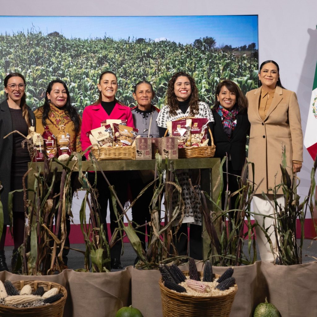 La presidenta anunció también que, a través del Instituto de la Economía Social, se impulsará la formación de cooperativas de mujeres campesinas dedicadas a la producción y venta de tortillas a precios justos, elaboradas con maíz nativo.