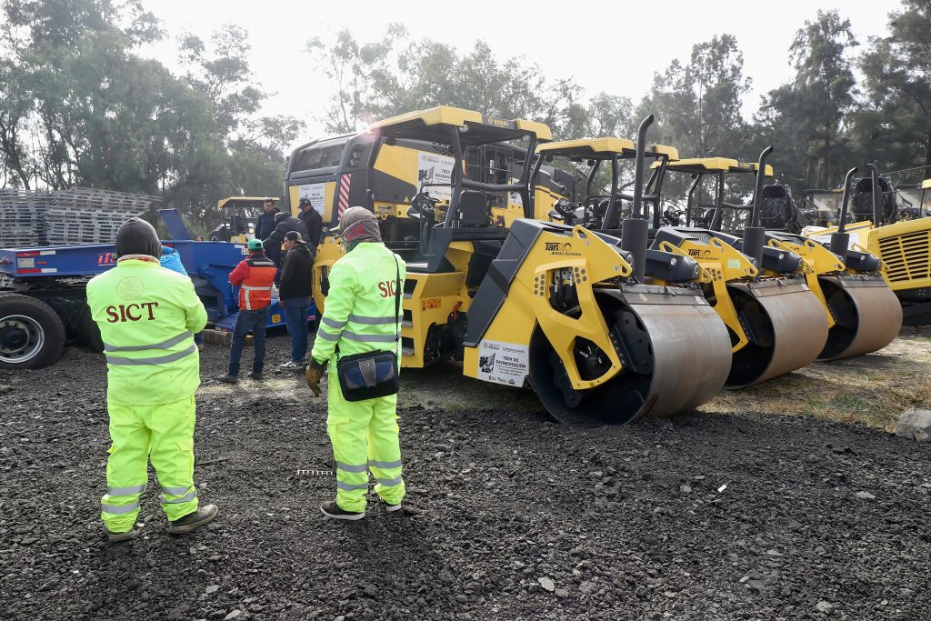 La Secretaría de Infraestructura, Comunicaciones y Transportes (SICT) entregó tres trenes de repavimentación para la rehabilitación de la Red Carretera, a los municipios de Chicoloapan, Ecatepec y Nezahualcóyotl.