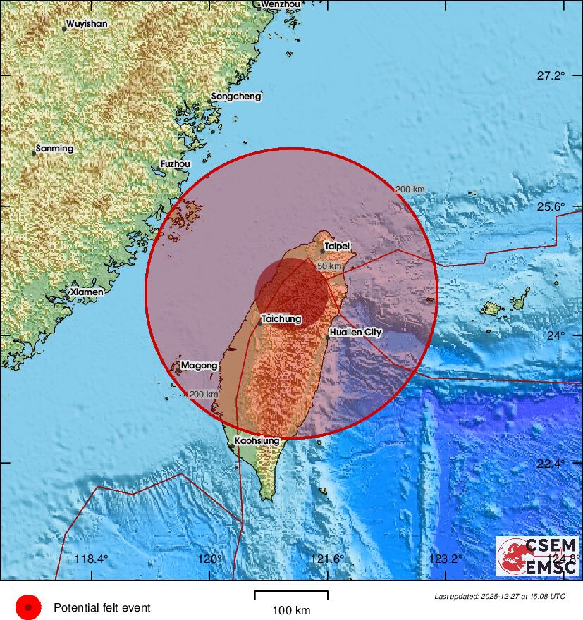 Hasta el momento, el gobierno de Taipéi no ha reportado afectaciones estructurales, aunque se recibieron dos llamadas de emergencia por presuntas personas atrapadas.
