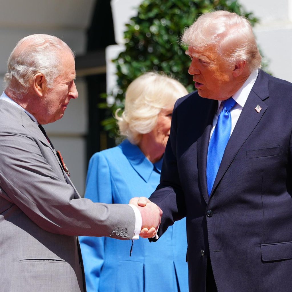 Acompañado por la primera dama Melania Trump, el mandatario recibió a la pareja real en el pórtico sur, donde posaron para la fotografía oficial sin responder preguntas de la prensa. Antes del encuentro privado, Trump elogió al monarca británico, a quien calificó como “un gran rey”.