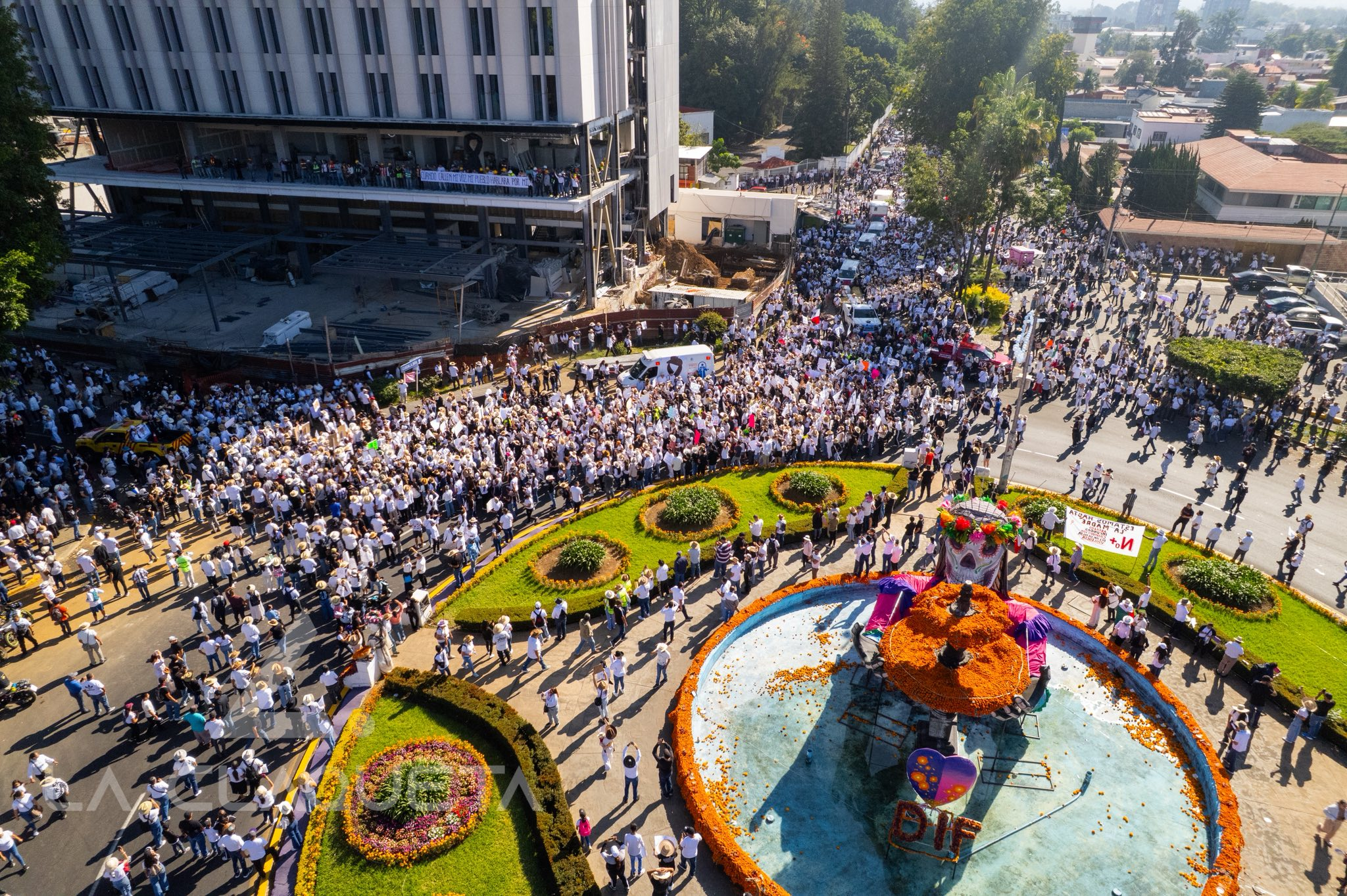 Ataviados con ropa blanca, los asistentes corearon consignas como “México escucha, esta es tu lucha” y “El legado del sombrero seguirá”. Además la ciudadanía mostro apoyo a Grecia Quiroz, viuda de Manzo y recientemente designada como alcaldesa sustituta de Uruapan.