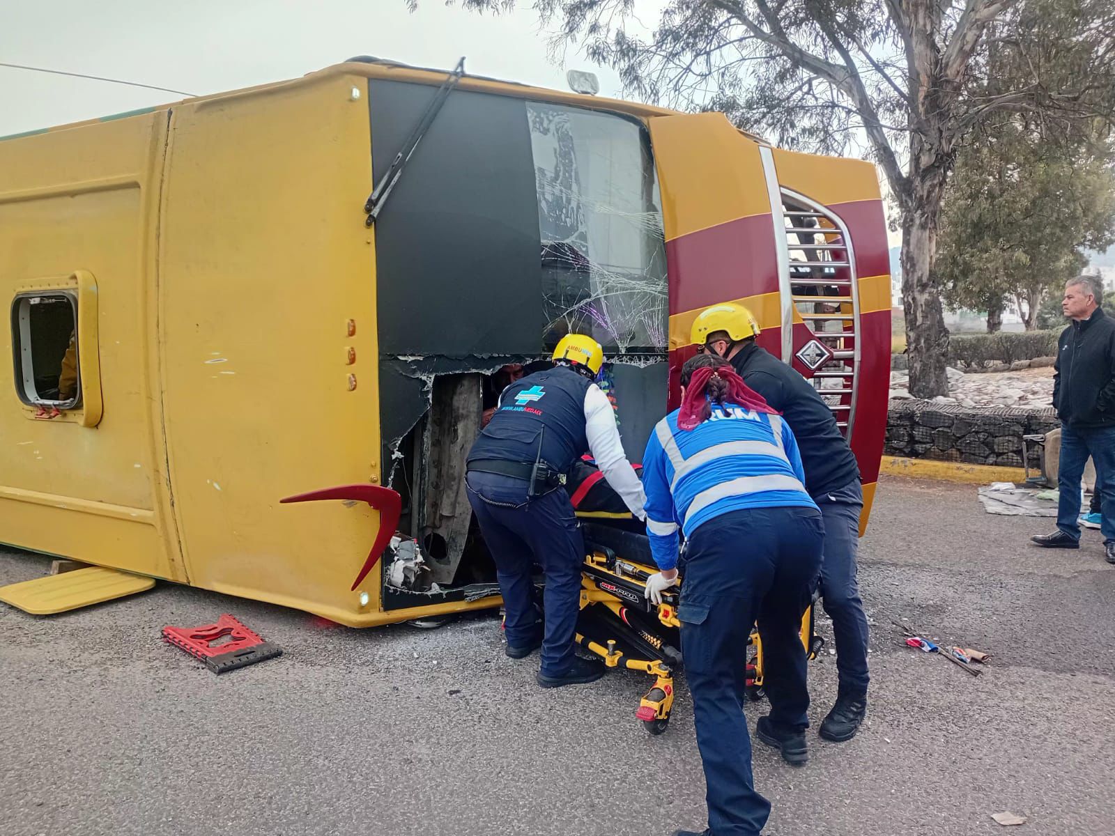 Un camión de pasajeros de la Ruta Industrial de Morelia, Michoacán, volcó a la altura de la Glorieta de Tres Marías lesionando a al menos 12 pasajeros que viajaban en la unidad.